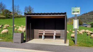 ensemble abris bus, banc et poubelle